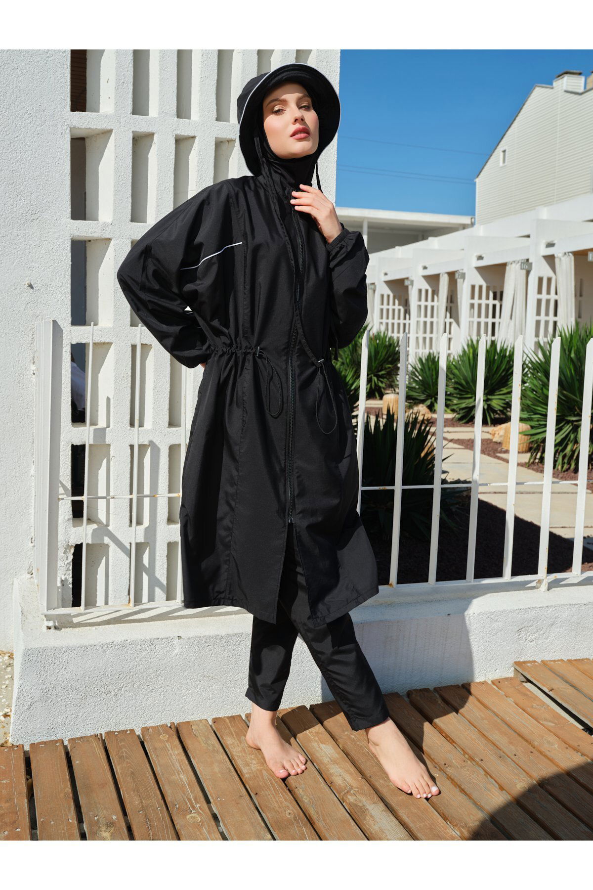 Kıl Biye Şapkalı Oversize Uzun Tesettür Mayo - ALF26521