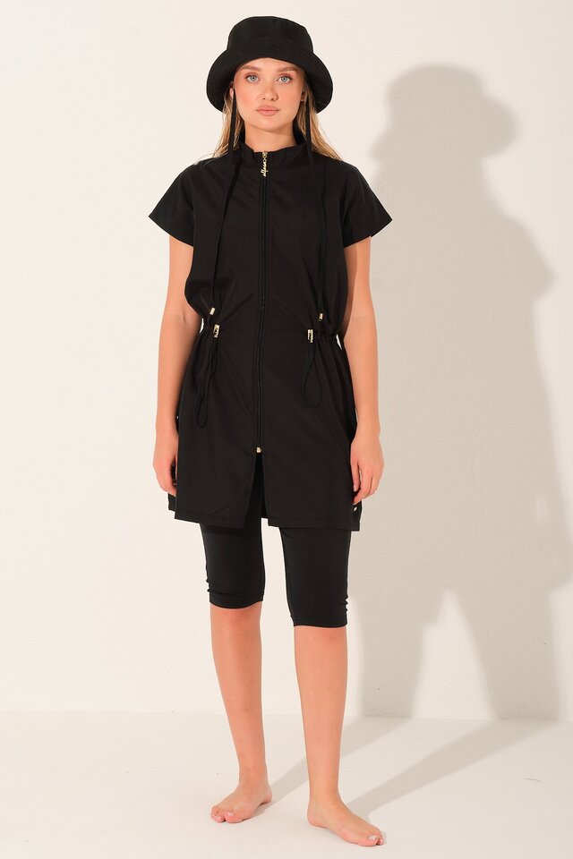 Şapkalı Yarım Kol Yarı Kapalı Mayo - ALF26709